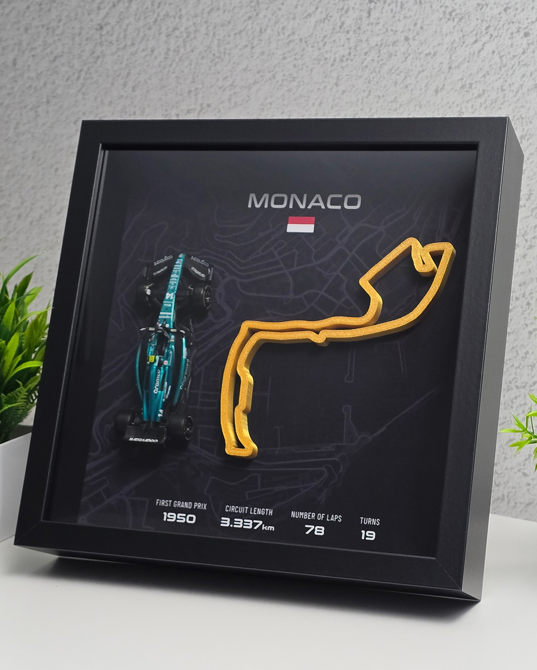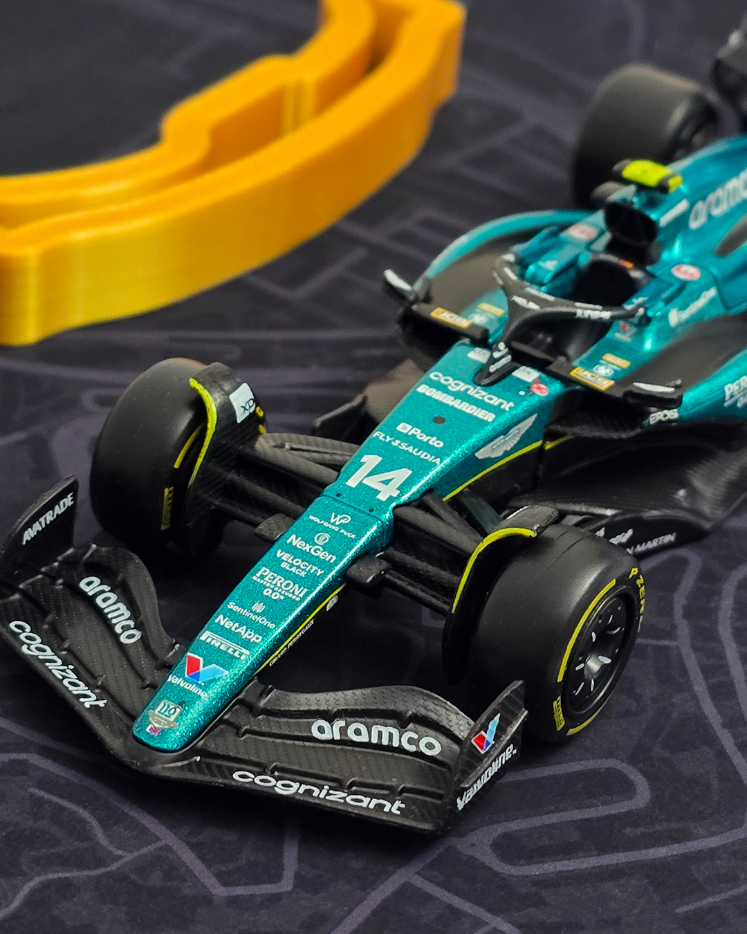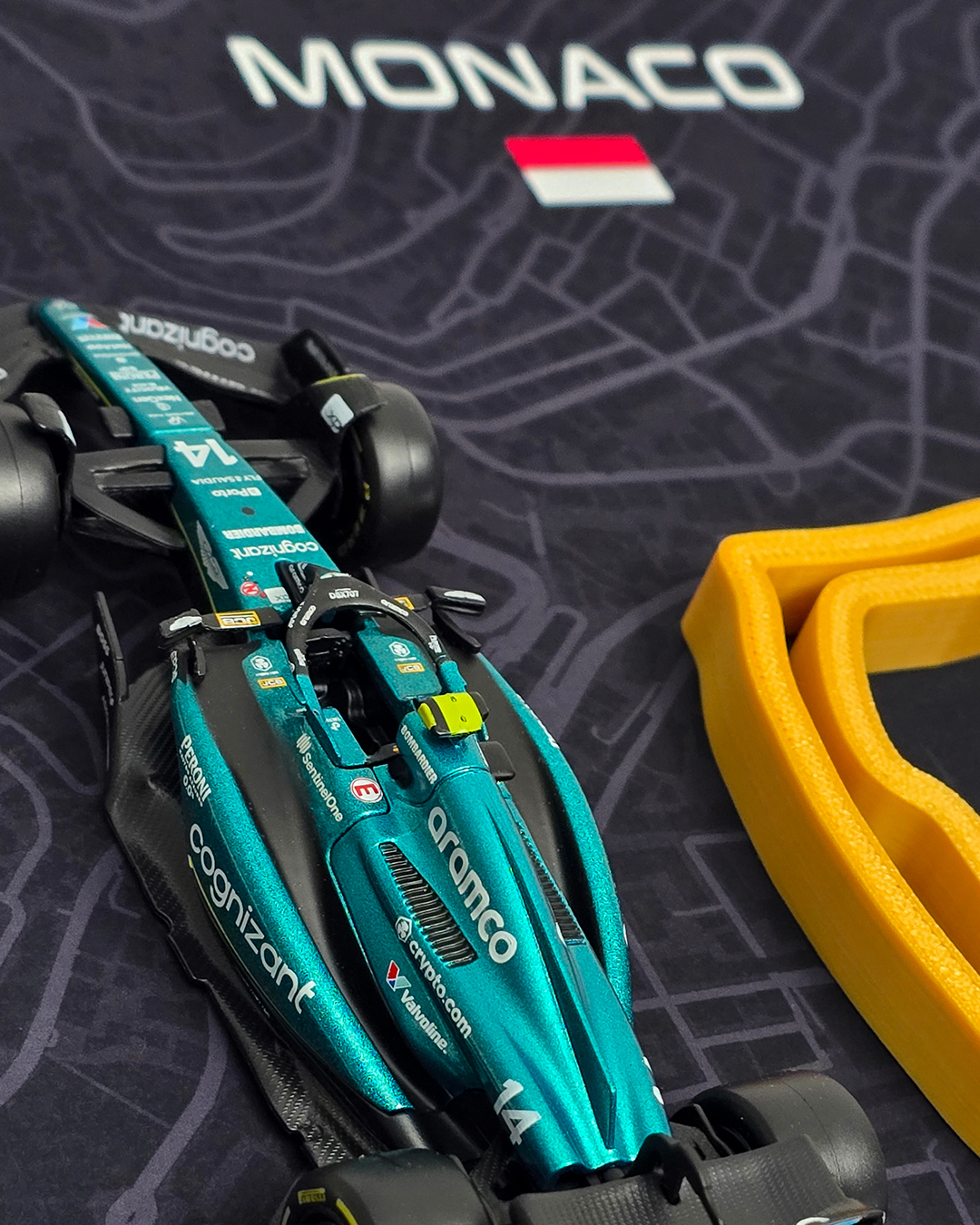1:43 ölçekli model araç ve 3D yazdırılmış pistten oluşan özgün bir koleksiyon parçası.